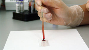Πολλές φορές θα χρειαστεί να πάρουμε μια ελάχιστη ποσότητα αίματος, στο μέγεθος περίπου μιας σταγόνας, για να το εξετάσουμε κάτω από το μικροσκόπιο. Λαμβάνεται από το φιαλίδιο της Γενικής Αίματος, ή ακόμα καλύτερα απευθείας από ένα τριχοειδές (πολύ μικρό αγγείο) της άκρης του δαχτύλου. Τοποθετείται σε γυάλινη αντικειμενοφόρο πλάκα με ειδική τεχνική. Το επεξεργαζόμαστε με διάφορες χρωστικές ώστε να είμαστε σε θέση να το παρατηρήσουμε υπό μεγέθυνση. Η εξέταση της εμφάνισης των κυττάρων (μέγεθος, σχήμα, χρώμα, πυρήνας, μεμβράνη κλπ), και η μορφή που παίρνουν κάτω από τον φακό, μπορεί να μας οδηγήσει απευθείας στη διάγνωση. Ακόμα πιο συχνά όμως, θα κατευθύνει τη διαγνωστική προσέγγιση (ποιό ανοσοφαινοτυπικό πάνελ ή ιχνηθέτες FISH θα χρησιμοποιήσουμε), και θα καθορίσει το επόμενο βήμα που θα χρειαστεί για να φτάσουμε στη διάγνωση. Επίσης, αποκλίσεις του αριθμού των λευκών αιμοσφαιρίων ή των αιμοπεταλίων, όπως προκύπτουν από την Γενική Αίματος, αντιστοιχίζονται με την οπτική καταμέτρηση των κυττάρων στο μικροσκόπιο. Θεωρείται αναπόσπαστο κομμάτι της διερεύνησης, και κάποιες φορές και της παρακολούθησης, των περισσότερων αιματολογικών νοσημάτων.